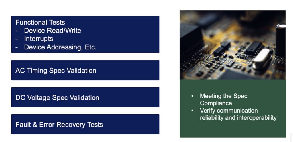 支援時序與電氣規範驗證,並可測試容錯與異常回復能力。